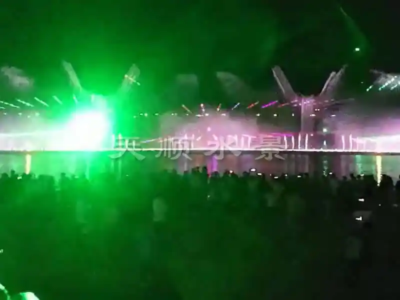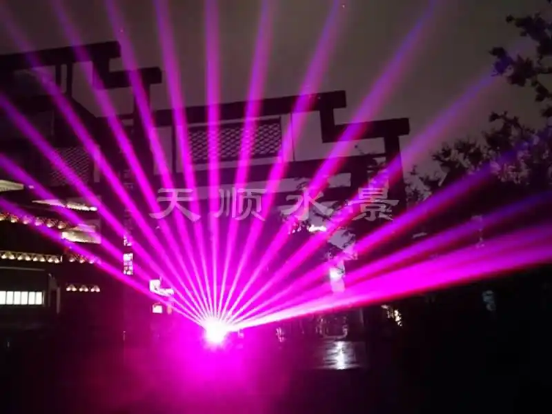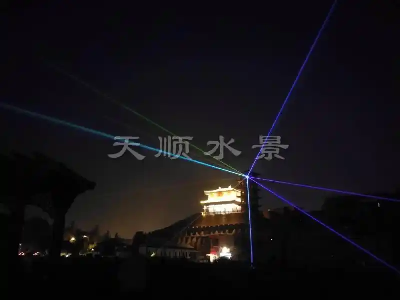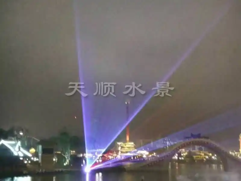 水幕激光表演系统是将激光器发出的激光束射在水幕喷头喷出的水膜上,激光束由激光控制系统编程控制,可发出多种多样的图案及色彩,照射在晶莹透明的水膜上,形成斑斓夺目的奇异效果.水幕电影出现于20世纪80年代,在**上也仅在法国、日本等几个国家的大城市拥有。水幕电影采用特殊的入映机播放,使用的影片也是专门为水幕电影特制的影带。由于电影的屏幕是透明的水膜,因此在电影播放时会有一种特殊的光学效果,屏幕的视觉穿透性可使画面具有一种立体的感觉,影片的内容可与水面巧妙的结合,更有一种身临其境般的奇幻感觉。 dsss水幕电影是通过高压水泵和特制水幕发生器,将水自上而下,高速喷出,雾化后形成扇形“银幕”,由专用放映机将特制的录影带投射在“银幕”上,形成水幕电影。当观众在观摩电影时,扇形水幕与自然夜空融为一体,当人物出入画面时,好似人物腾起飞向天空或自天而降,产生一种虚无缥缈和梦幻的感觉,令人神往。